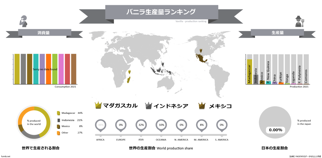 世界ではどの国がどのくらいバニラを生産しているのでしょうか?