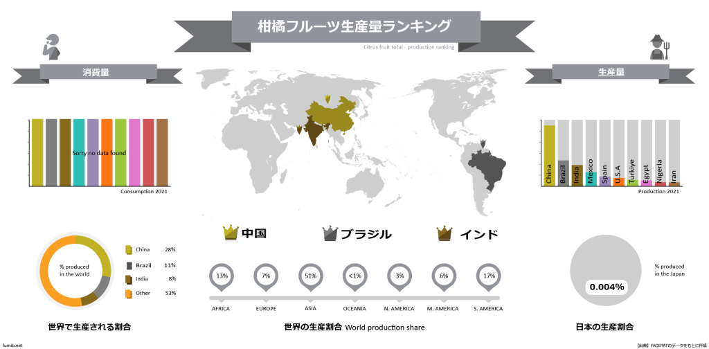 柑橘フルーツはどの国がどのくらい生産しているのでしょうか?