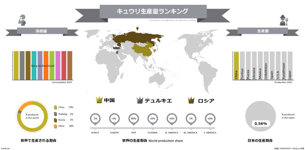 世界ではどの国がどれくらいキュウリを生産しているのでしょうか?
